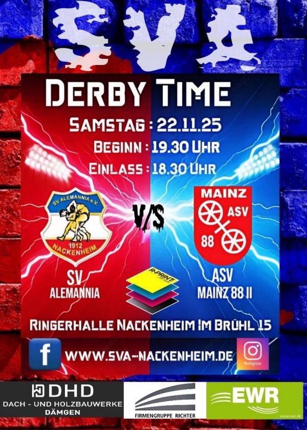 Am Samstag 22.11.2025 um 19.30 Uhr ist es soweit. Das Herz der Ringer- Nation schlägt wieder schneller ! Unsere Jungs empfangen zum Ultimativen Showdown den Erzrivalen ASV MAINZ 88 II