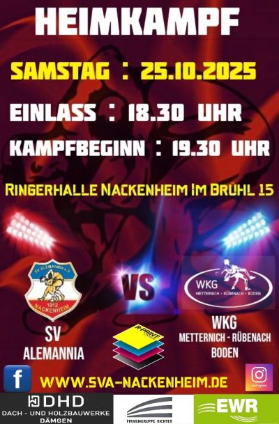 Am Samstag empfangen wir die WKG Metternich-Rübenach-Boden in unserer Ringerhalle im Brühl 15!